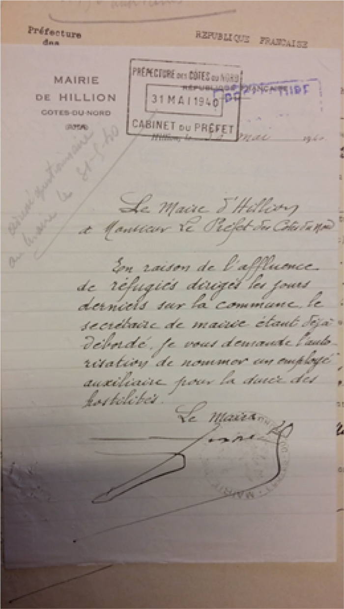 Jean Dijon qui était secrétaire de mairie reprit aussitôt ses fonctions. L’administration communale participa bon gré malgré, à la récupération des quelques prisonniers d’Hillion qui venaient de bénéficier d’une permission exceptionnelle dans le cadre des aides agricoles au moment des moissons, ce devait être en juillet-août en fournissant la liste avec noms et adresses aux autorités sous contrôle allemand. Certains auraient pu à ce moment-là, se soustraire aux recherches et éviter cinq années de stalag. C’est vrai qu’il y avait la menace de représailles sur les familles et les maquis n’étaient pas encore constitués. Les plus âgés furent démobilisés puis renvoyés dans leur foyer.