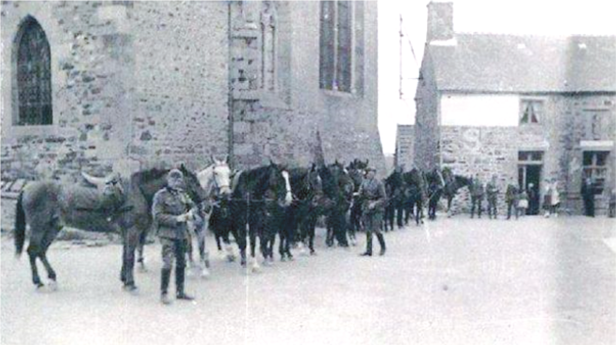 Les Allemands sont arrivés à Hillion le 9 septembre 1940. Leur arrivée se limite au seul souvenir d’une fanfare jouant près des jeux de boules dans la cour du café Le Mounier (Dijon). Trois ou quatre enfants de Lermot étaient là bien sûr en s’approchant au plus près car une telle musique, c’était un événement. Derrière il y avait quelques badauds venus eux aussi pour écouter et surtout pour voir ces occupants. A la fin du concert il n’y eut pas d’applaudissements. J’entends encore certaines réflexions comme : « Eh bien, ils ne sont pas si méchants que ça les boches ! ». Les habitants du village semblaient rassurés. La troupe réquisitionna certaines maisons généralement inoccupées principalement des résidences secondaires comme les villas Thébault, Renault, Beau Site et Villa Gaby, etc…il fallait bien loger tous ces soldats. Je ne les vis pas arriver, je devais être à l’école.