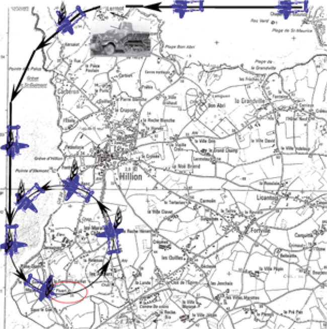 L’avion sera abandonné en plein champ et démonté par les soldats allemands qui sont au Château des Aubiers. Ceux-ci pourchasseront le lieutenant Emerson et l’arrêteront.