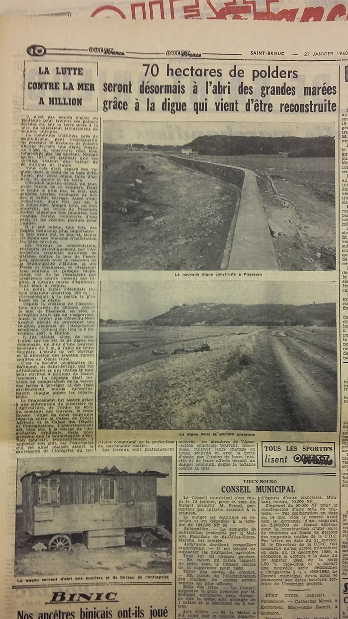 Les inondations ont été un fléau récurrent sur les basses terres de Hillion gagnées sur la mer. En 1960 une grande digue est construite.
