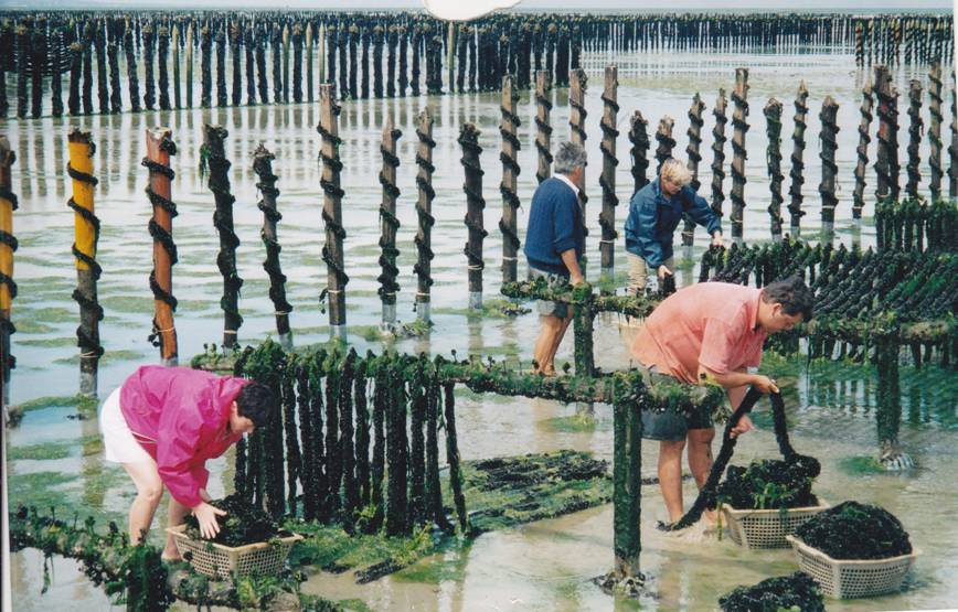 Pour les mytiliculteurs de Charron, il faut trouver d’autres sites pour se reconstruire. Ils choisissent la Baie du Mont St Michel (Le Vivier/s/mer), St Cast-Le Guildo et surtout la baie de Saint Brieuc (Hillion) où les marées importantes conviennent parfaitement à cette activité.