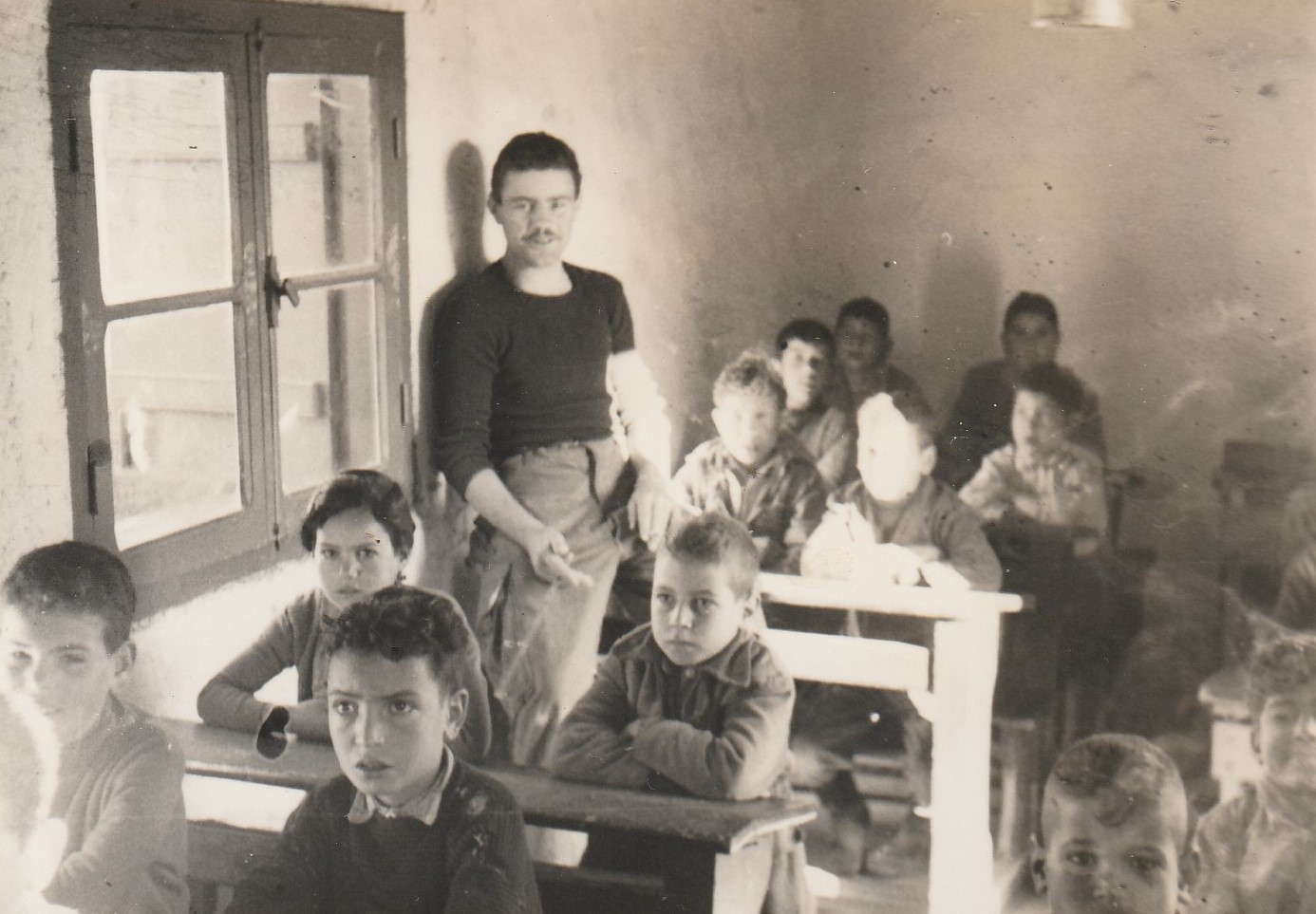 J’ai aussi fait l’école, en même temps ! Je n’ai pas fait que garder un piton. En arrivant, au bout de trois mois, j’ai vu que ça sentait mauvais, et ils ont demandé s’il y avait des volontaires pour faire instit. A part lecture, additions, soustractions, je n’y connaissais rien. Ils nous ont fait passer des tests pendant 8 jours et j’ai été pris. Je faisais la classe pendant la journée et s’il y avait des opérations la nuit, je devais y aller. C’était pas 8 heures / 8 heures, il n’y avait pas d’horaires. J’avais un garde du corps qu’était licencié en droit, j’avais été plus fort que lui aux tests ! Il montait sur le toit pour nous garder. Il y avait deux classes d’une vingtaine d’enfants, filles et garçons, les plus jeunes avaient 6/7 ans et les plus âgés 12/13 ans. Ils très intéressés et très intelligents, et très polis. Je me souviens de Yasmina, elle était très intelligente. La plupart étaient bilingues, ils parlaient arabe et français. Je leur donnais à manger à 10 heures. Il y en avait qui parlaient peu français, et quand je suis parti ils faisaient des divisions à deux chiffres ! Ma classe se trouvait à environ 2 km de mon piton, à côté d’une mechta. On n’a jamais eu de problèmes avec qui que ce soit. Les gamins me prévenaient quand il y avait quelqu’un à côté. Les parents n’intervenaient jamais, on n’a jamais eu de problème avec les parents.