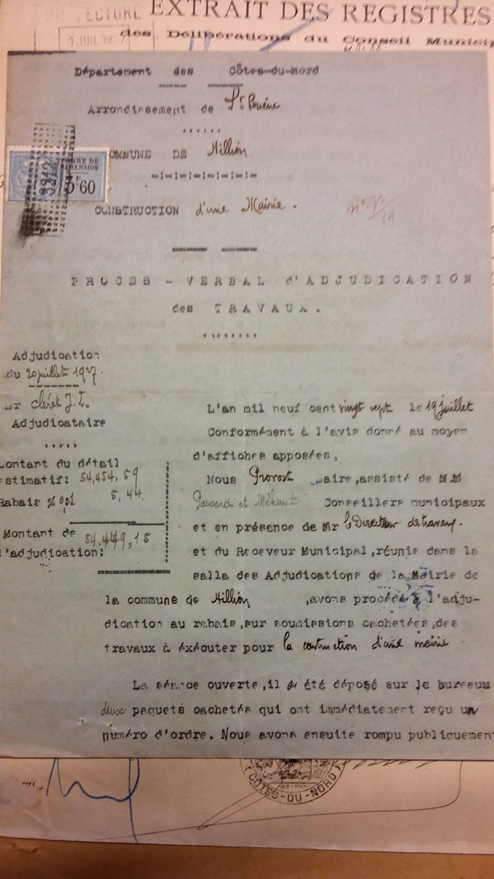 Dès 1923, le Conseil Municipal d’Hillion pense à l’électrification de la commune. Au début, le projet est de relier les deux bourgs au réseau existant, mais en 1931, il ajourne cette décision en raison du coût élevé et attend que l’usine hydro-électrique de Pont Rolland soit mise en service.