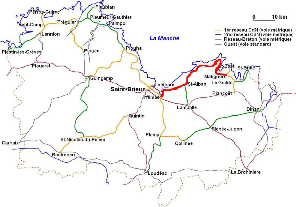 Elle comptait de nombreux ouvrages d’art dont le viaduc des Ponts-Neufs à Hillion qui a la particularité d’être en courbe.