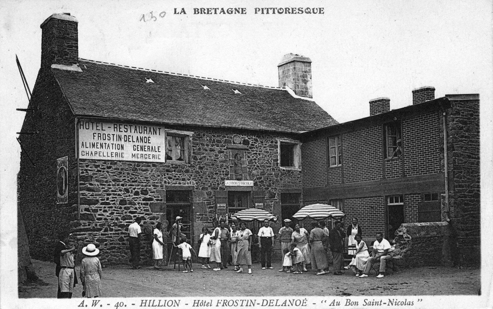 Dès 1900, des vacanciers « régionaux », mais aussi des Parisiens viennent à Hillion, comme en témoigne l’évolution de ces deux cartes de l’hôtel Saint Nicolas en 1905 et à la fin des années 30. Les « congés payés » sont passés par là, même s’ils restent minoritaires dans la commune.